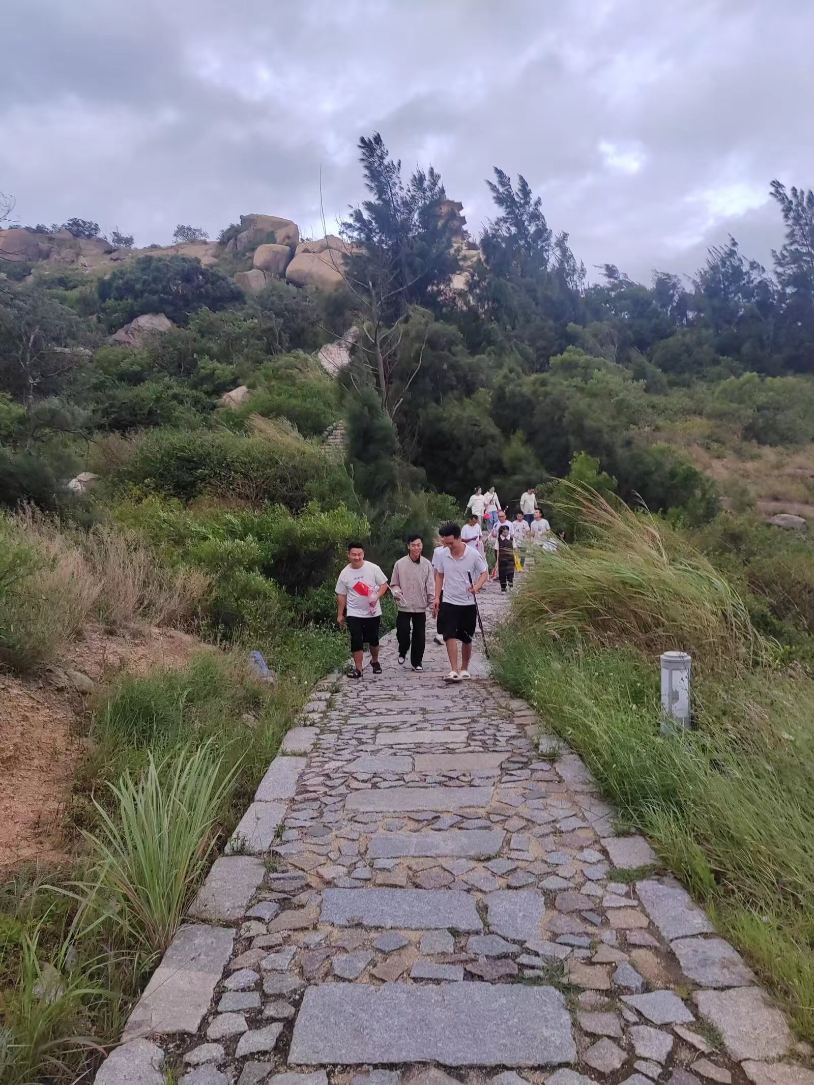 一路上,职工们挥舞着国旗,欢声笑语不断。行至过半,尽管有的员工已累得气喘吁吁,步履维艰,但彼此相互鼓励,相互搀扶,勇往直前,最终顺利登顶。大家驻足欣赏姑嫂塔美景,用手机记录着这来之不易的美好时刻,当站在山顶往下俯瞰石狮时,“会当凌绝顶,一览众山小”的豪迈之感油然而生。最后,大家异口同声地高喊:祝祖国繁荣昌盛、国泰民安!以传达华联人对祖国的殷殷祝福。